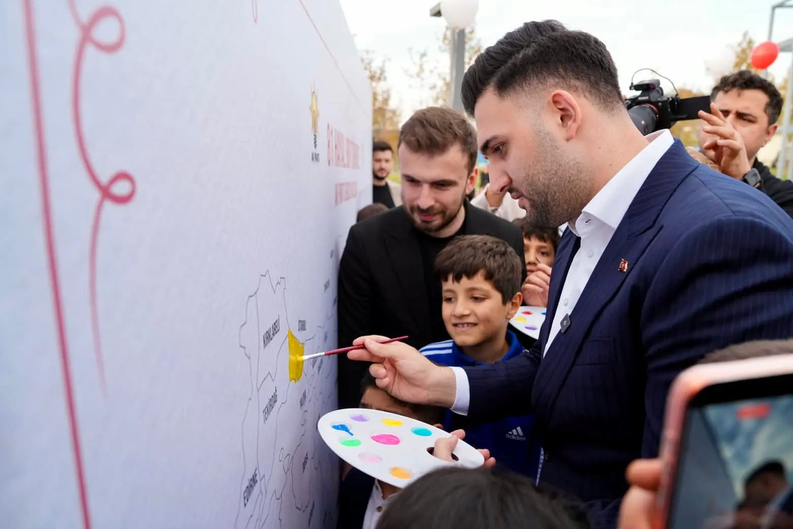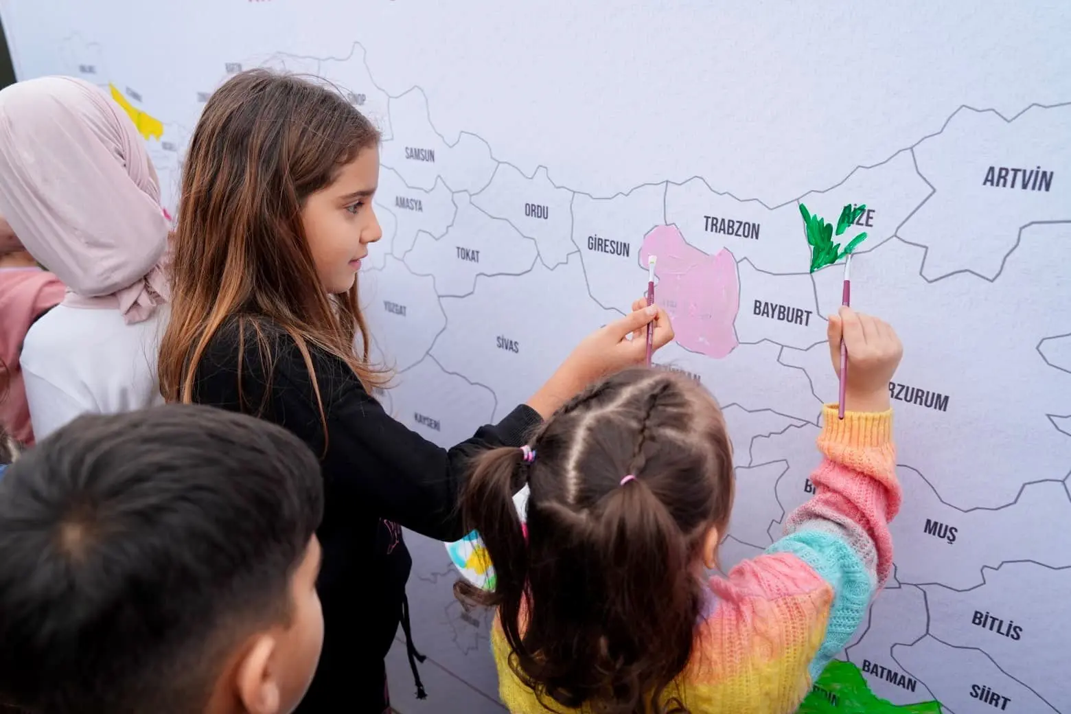 Basın açıklamasının ardından çocuklar, Türkiye’nin 81 ilini temsil eden Türkiye haritasını kendi renkleriyle boyadı. Haritada her il, çocukların hayal gücünü yansıtan farklı renk ve desenlerle süslendi. Etkinlik alanı, çocukların coşkusuyla renkli görüntülere sahne oldu.