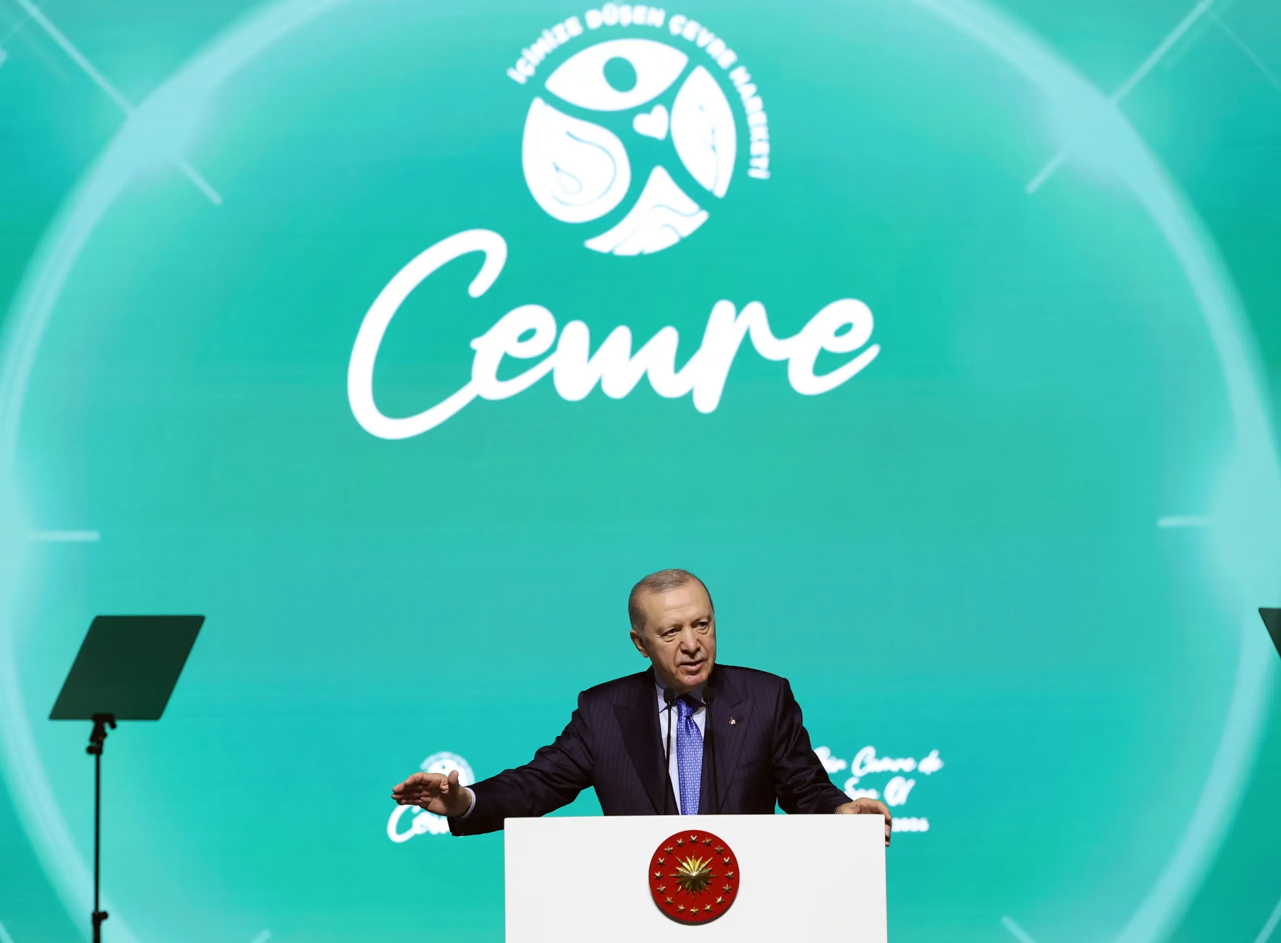 Cumhurbaşkanımız Erdoğan, çevre projelerinin çatısını sıfır atık anlayışının oluşturduğunu belirterek, şunları kaydetti: "Bu hareket bize şunu öğretiyor. Bir pet şişeyi geri dönüştürdüğümüzde sadece bir atığı bertaraf etmiyoruz, aynı zamanda bir canlının hayatını, bir sahilin güzelliğini, bir çocuğun umudunu da kurtarıyoruz. Bir ağacı kurtardığımızda yalnızca bir fidan yeşertmiyoruz, daha önemlisi bir neslin nefesini de güvence altına alıyoruz. Şimdi tüm bu çabaları, projeleri ve hizmetleri bir üst aşamaya taşımaya hazırlanıyoruz. Biliyorsunuz oldukça çetin geçen diplomatik müzakereler neticesinde COP31'in ev sahipliğini üstlendik. Bu sene Antalya'da 200'e yakın ülkeyi ağırlayacak, inşallah artık 'Söz değil, eylem zamanı' diyeceğiz. Çevreye, afetlere ve topluma dair ilk ısıyı büyütme gayretiyle kurulan Cemre Vakfımızın bizlere bu mücadelemizde destek olacağına, omuz ve katkı vereceğine yürekten inanıyorum. İnşallah biz de Cemre Vakfı gibi samimi, sorumlu, vizyoner ve gayretli sivil toplum kuruluşlarımıza gereken her türlü desteği vereceğiz."