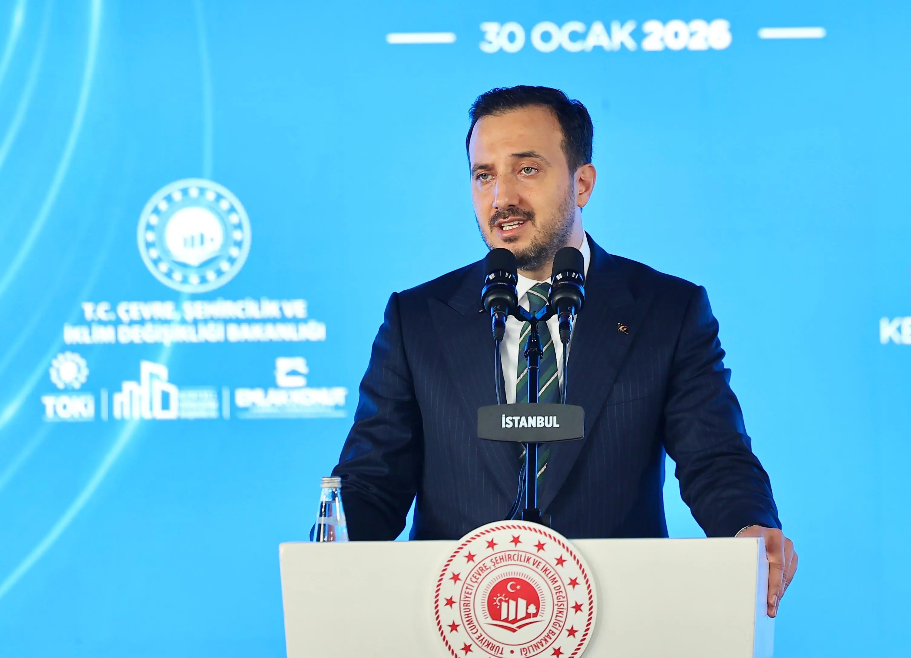 Çevre, Şehircilik ve İklim Değişikliği Bakanımız Murat Kurum, “Bugün Okmeydanı'ndaki kardeşlerimizi 939 ev ve işyerine kavuşturuyor, bizi, Okmeydanı'nın annelerine, yavrularına mahcup etmeyen Allah'a hamd ediyor; yeni yuvalarımız hayırlı uğurlu olsun diyorum. Bugün ABD'de, Almanya'da bir afet olduğunda vatandaşını sigorta şirketinin insafına terk eden bir anlayış varken; Türkiye artık, afet öncesi ve sonrası hızlı, kaliteli konut üretiminde de, kentsel dönüşüm tecrübesinde de tüm dünyada bir numaradır. Biz bu gücümüzü, kabiliyetimizi ve 11 ilimizde kazandığımız büyük tecrübeyi şimdi başta İstanbul olmak üzere 81 ilimize taşımak istiyoruz. Bunun için Cumhurbaşkanımızın açıkladığı Yüzyılın Konut Projesi ile 500 bin sosyal konutu milletimize kazandırmak için hızla çalışıyoruz. Şu ana kadar 35 ilimizde kuraları çektik; 127 bin hak sahibimizi belirledik. Allah'ın izniyle önümüzdeki günlerde İstanbul'un kuraları için yine bir araya gelecek, 100 bin sosyal konutun hak sahiplerini; coşkuyla belirleyeceğiz. İstanbul'umuzda tabii kiralık konutlarımız da olacak, onun da sürecini ayrıca ilerleteceğiz. Bu iki büyük tecrübenin hızla yansıtılması gereken bir yer var. O da aslında Türkiye'nin bağımsızlığının anahtarı olarak gördüğümüz İstanbul'umuzdur. İstanbul'umuz; her an deprem tehdidi ile yaşayan milyonlarca kardeşimize ev sahipliği yapmaktadır. İstanbul'un depreme hazırlanması, bu ülke için bir beka meselesidir, varlık-yokluk meselesi olarak gördüğümüzü her zaman ifade ediyoruz. Bu anlayışla hareket ediyor, şu anda her iki kentsel dönüşümden birini İstanbul'da gerçekleştiriyoruz. Bugün İstanbul'un neresine giderseniz gidin, orada bizi görürsünüz.” ifadelerini kullandı.