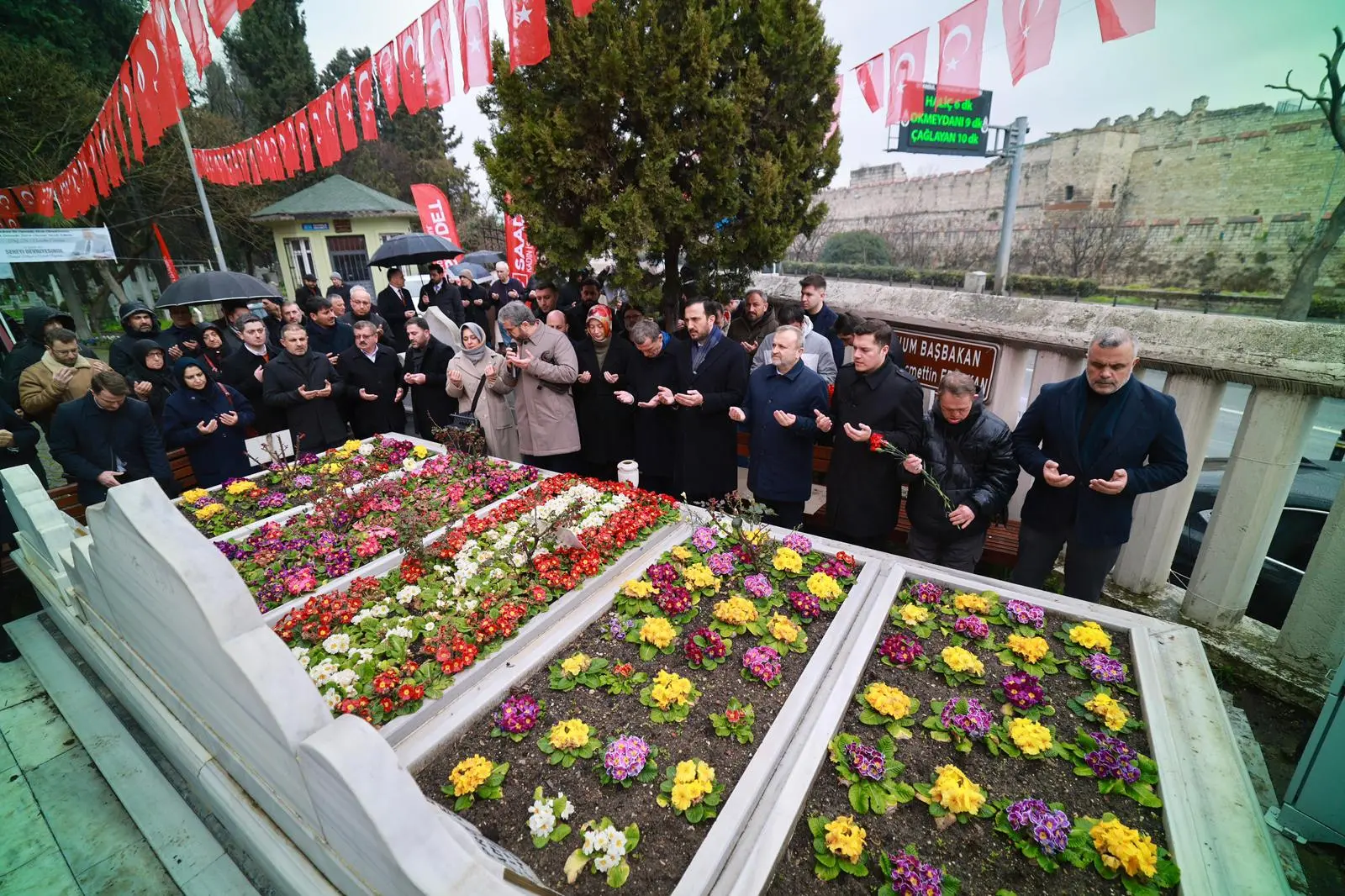 Zeytinburnu Merkezefendi Mezarlığı'ndaki anma programına İl Başkanımız ile İl Başkan Yardımcımız Rabiya Kazak Aci, Zeytinburnu İlçe Başkanımız Mustafa Yalçınkaya, Zeytinburnu Belediye Başkanımız Ömer Arısoy ve teşkilat mensuplarımız katıldı.
