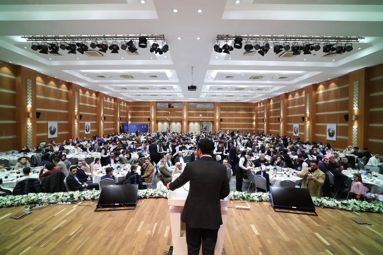 “Bu salonda birçok yemek, iftar, birçok program düzenleme imkanımız oldu. Birçok kitleye hitap ettik ama bence en kıymetli ve en anlamlılarından bir tanesi de bugün burada aile ortamında, bir sofra etrafında, bir masa etrafında tüm İstanbul Teşkilat Ailesi olarak bir arada olmaktı. Özellikle teşkilatın içerisinde uzun yıllar görev yap bir yol arkadaşımız olarak aslında bizlerin yorgunluğu ve meşakkati kadar belki daha fazlasını çok kıymetli ailelerimiz fedakarlık yaparak göstermekte. Belki bizim buradaki koşuşturmacamızdan çok daha fazlasını kıymetli ailelerimiz bizleri desteklemek, ülkemizi, cumhurbaşkanımızı, davamızı desteklemek üzere aile içerisinde büyük bir özveriyle gösteriyorlar.