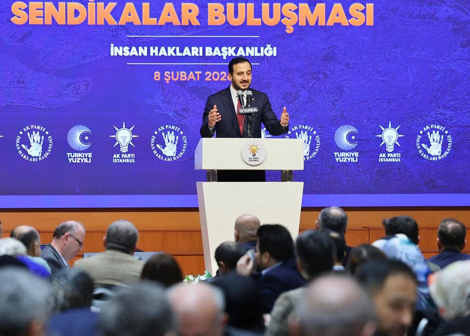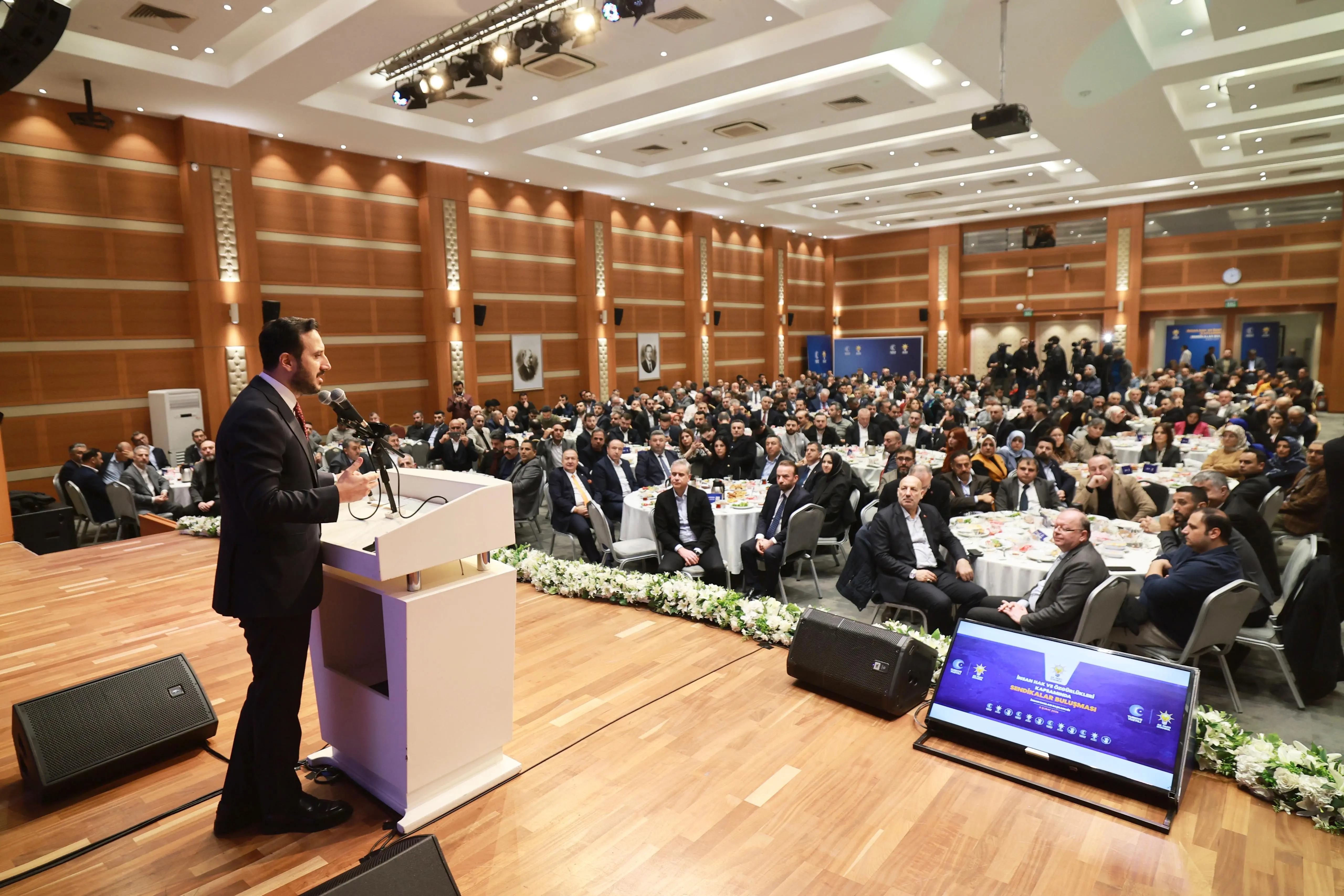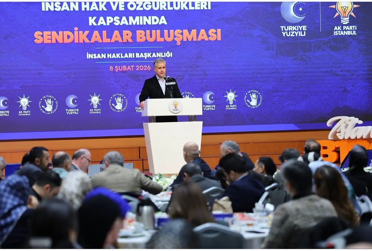 “Bugün burada, İstanbul’umuzda emeğin sesi olan sendikalarımızın değerli temsilcileri ile aynı masa etrafında buluşmaktan büyük bir mutluluk duyuyoruz. Bu buluşmayı sadece bir istişare toplantısı olarak değil; emeğe, alın terine, sosyal adalete ve çalışma barışına verilen ortak bir değerin güçlü bir ifadesi olarak görüyoruz. AK Parti olarak insan haklarını yalnızca bireysel özgürlükler çerçevesinde değil, çalışma hayatında adaletin, hakkaniyetin ve onurun korunması olarak ele alıyoruz. AK Parti iktidarı döneminde sendikal hakların güçlenmesi adına çok önemli reformları hayata geçirdik. Sendikal örgütlenmenin önündeki engeller kaldırılmış, noter şartı tarihe karışmış, darbe döneminin ürünü olan sendikal mevzuatlar demokratik standartlara kavuşturulmuştur. 1 Mayıs istismarın değil emeğin ve dayanışmanın günü hâline getirilmiştir. Taşeron işçilerin kadroya alınmasıyla çalışma hayatında tarihi bir adım atılmıştır. Sosyal güvenlikte yapılan reformlarla emekçilerimiz insana yakışır hizmetlere kavuşmuştur. Bugünkü buluşmamız da işte bu anlayışın bir devamıdır. Farklı görüşlerimiz, farklı tecrübelerimiz olabilir. Ortak paydamız nettir: Türkiye’nin huzuru, çalışma barışı ve emeğin itibarıdır.”