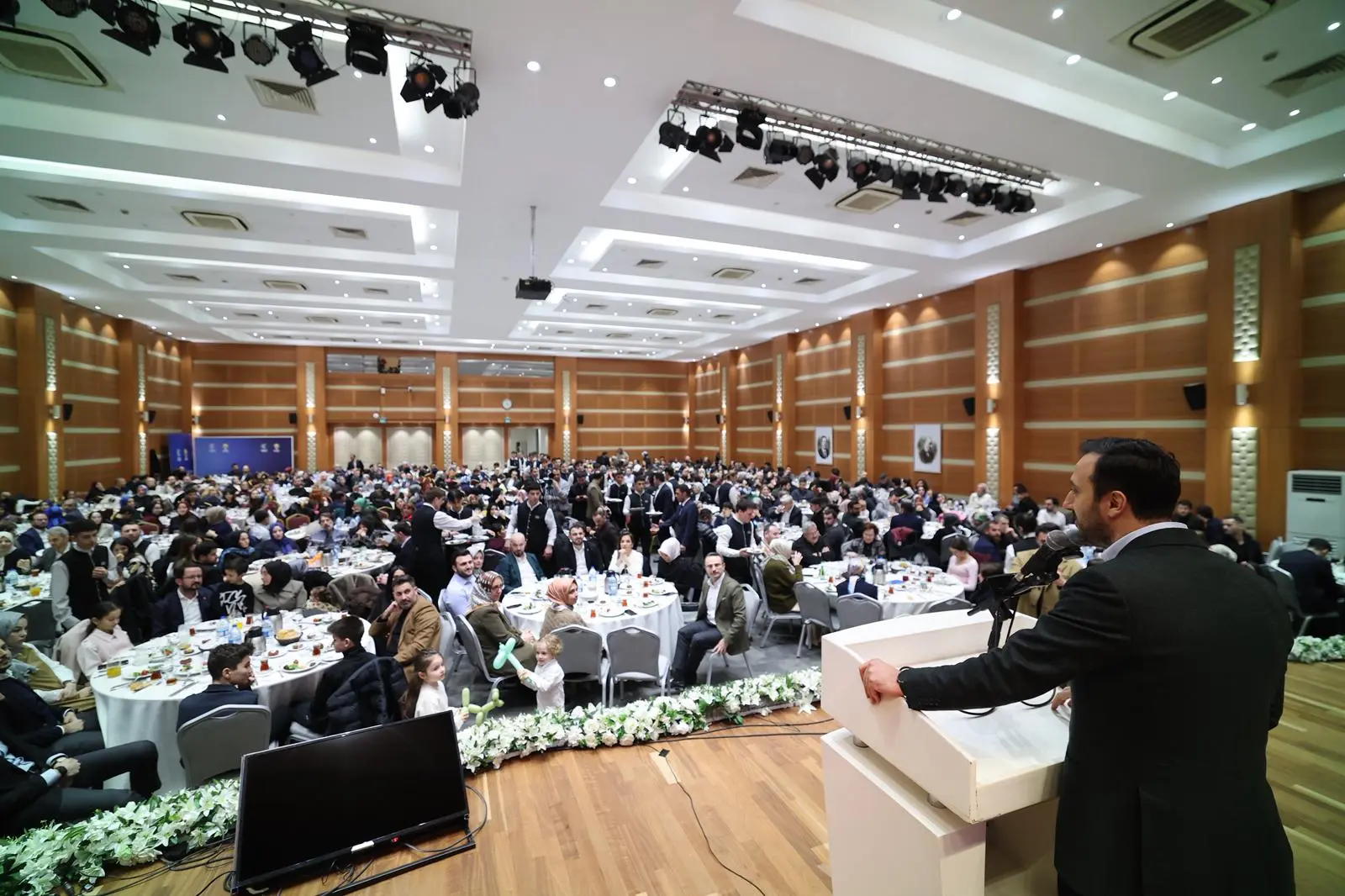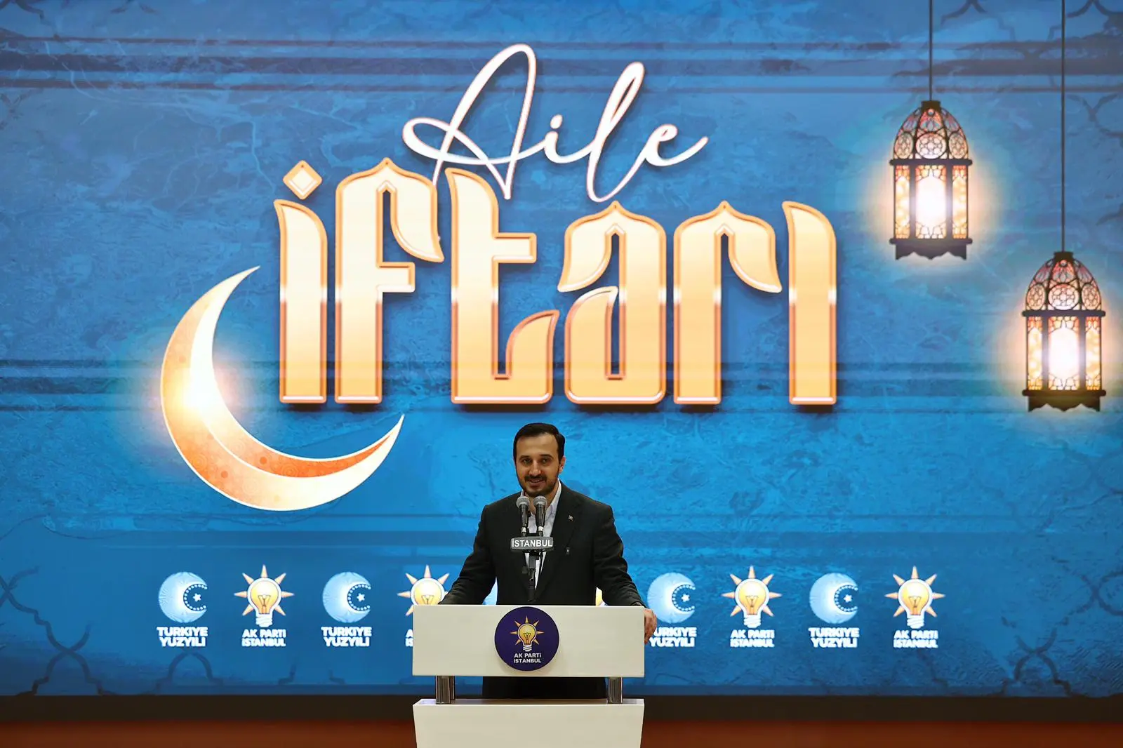 “Bu salonda birçok yemek, iftar, birçok program düzenleme imkanımız oldu. Birçok kitleye hitap ettik ama bence en kıymetli ve en anlamlılarından bir tanesi de bugün burada aile ortamında, bir sofra etrafında, bir masa etrafında tüm İstanbul Teşkilat Ailesi olarak bir arada olmaktı. Özellikle teşkilatın içerisinde uzun yıllar görev yap bir yol arkadaşımız olarak aslında bizlerin yorgunluğu ve meşakkati kadar belki daha fazlasını çok kıymetli ailelerimiz fedakarlık yaparak göstermekte. Belki bizim buradaki koşuşturmacamızdan çok daha fazlasını kıymetli ailelerimiz bizleri desteklemek, ülkemizi, cumhurbaşkanımızı, davamızı desteklemek üzere aile içerisinde büyük bir özveriyle gösteriyorlar.